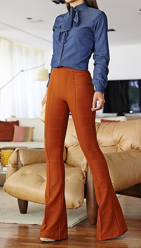 No melhor estilo boho, a flare é novamente introduzida no guarda roupa feminino, desta vez com a cintura mais alta.