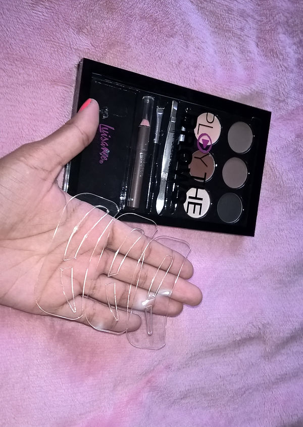 Os moldes ajudam quem ainda não tem a prática de preencher as sobrancelhas, são 3 tamanhos diferentes, é só por sobre a sobrancelha e preencher com um pouquinho da pasta fixadora e depois com a sombra referente ao seu tom de cabelo,simples assim.