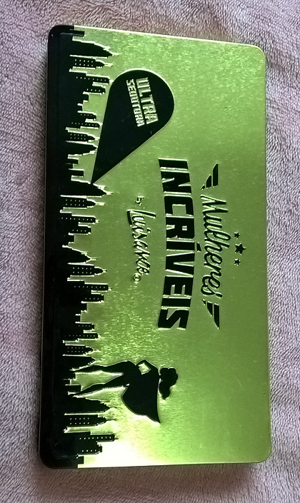 Ela tem essa embalagem que choca qualquer um logo de cara e as cores são incríveis,ela tem um formato pequeno que dá pra levar na bolsa ou na mochila ,o material é de lata que é um charme , isso sem falar nos desenhos super lindos da mulher maravilha na frente o que eu confesso que me deixou completamente, gritando por dentro!